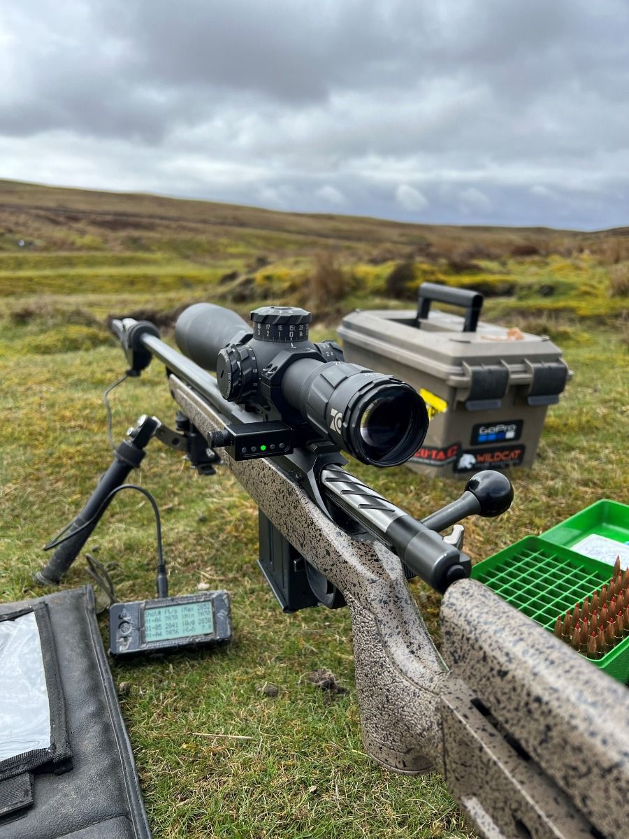 The Creedmoor RPR has had its seating depth tuned now and is starting to show a good waterline at my 1209 half-minute target. My goal for my own, and my clients’ Creeds, is a good long string of hits on that half MOA plate at 1209. This barrel is still slicking in, adding a little noise but we’ll get there before long. Here is the Creed with the awesome little Valdada Mini on. A magic little dialler that’s a shade more compact than most while running the best of everything internally, and at a bargain price here in the UK. Note the ABR rear rest and Fortis rear bag again. This time, running the Accu-Tac up front.